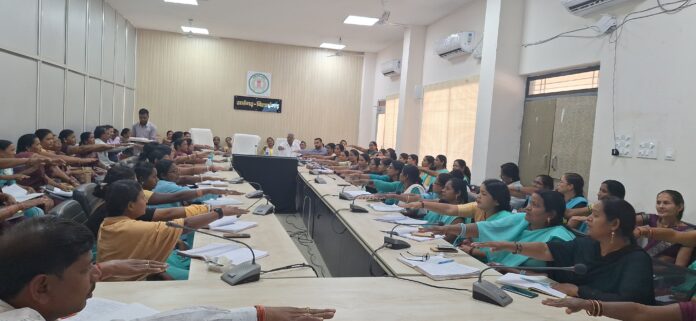 सारंगढ़ बिलाईगढ़ 6 मार्च 2025/ सीएमएचओ डॉक्टर एफ आर निराला की अध्यक्षता में जिले के 70 मितानिन ट्रेनर, स्वस्थ पंचायत समन्वयक, जिला और ब्लॉक समन्वयक की बैठक कलेक्टर सभाकक्ष में आयोजित किया गया। इसमें छूटे व्यक्तियों का आयुष्मान कार्ड बनाने, हाथी पांव (फाइलेरिया) बीमारी के दवा सेवन के साथ-साथ टीबी जांच और निक्षय मित्र बनाने के संबंध में दिशा निर्देश दिए गए।इस अवसर पर आयुष्मान के जिला नोडल अधिकारी डॉ रूपेंद्र साहू और रोशन सचदेवा उपस्थित थे। इस अवसर पर डॉक्टर निराला ने कहा कि फाइलेरिया की दवा को अपने सामने खिलाएं, उन्हें दवा देकर छोड़ना नहीं है। उन्होंने प्रमुखता से कहा कि हाथी पांव (फाइलेरिया) बीमारी का कोई उपचार नहीं है, बीमारी से बचने के लिए सभी व्यक्ति जरूर दवा खाएं, यही बचने का उपाय है।