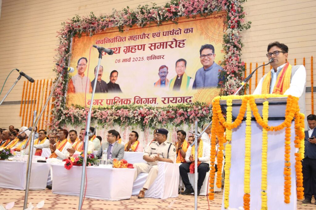वित्त मंत्री श्री ओ.पी.चौधरी ने कार्यक्रम को संबोधित करते हुए कहा कि मुख्यमंत्री श्री विष्णुदेव साय के नेतृत्व में क्षेत्र के विकास के लिए निरंतर कार्य किए जा रहे हैं। इससे क्षेत्र के विकास, आधारभूत संरचना को मजबूती मिलने के साथ लोगों को बेहतर सुविधाएं मिलेंगी। वित्त मंत्री श्री चौधरी ने कहा कि नव निर्वाचित महापौर एवं सभी पार्षदों के साथ मिलकर रायगढ़ के विकास के लिए हम सतत रूप से कार्य करेंगे, ताकि क्षेत्र की छोटी-बड़ी समस्याओं का समाधान प्राथमिकता के साथ हो सके।