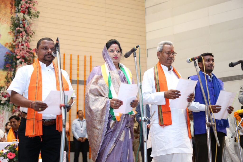रायगढ़/ वित्त मंंत्री श्री ओ.पी.चौधरी के मुख्य आतिथ्य में आज नगर निगम ऑडिटोरियम रायगढ़ में नवनिर्वाचित महापौर एवं पार्षदों का शपथ ग्रहण समारोह आयोजित हुआ। मौके पर नवनिर्वाचित महापौर श्री जीवर्धन चौहान सहित रायगढ़ शहर के सभी 48 वार्डो के पार्षदों ने अपने पद एवं गोपनीयता की शपथ ली। इस अवसर पर राज्यसभा सांसद श्री देवेन्द्र प्रताप सिंह उपस्थित रहे।