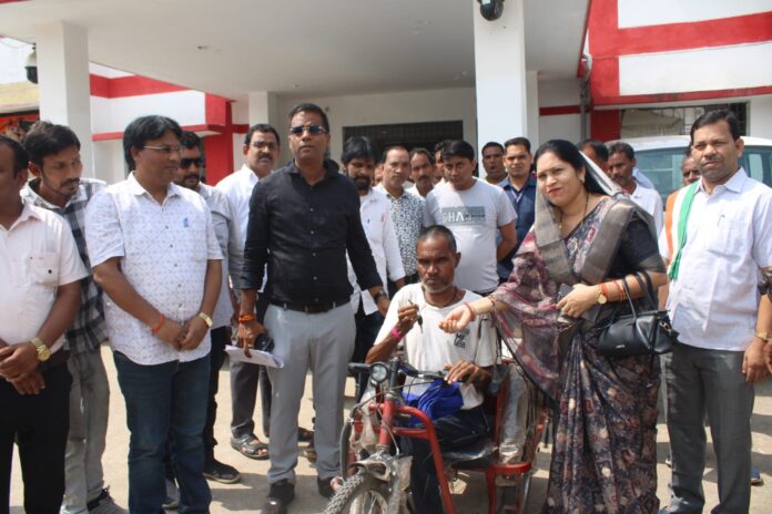 सारंगढ़ बिलाईगढ़, 5 अगस्त 2025/कलेक्टर जनदर्शन के दौरान सारंगढ़ विधायक उत्तरी जांगड़े और कलेक्टर डॉ संजय कन्नौजे ने कलेक्ट्रेट परिसर में हितग्राही पुनीराम खूंटे को ट्राईसाइकिल प्रदान किया। यह ट्राईसाइकिल समाज कल्याण विभाग के द्वारा सरकारी योजना के तहत उपलब्ध कराया गया है। इस अवसर पर समाज विभाग के उप संचालक विनय तिवारी भी उपस्थित थे। उल्लेखनीय है कि हितग्राही पुनीराम खूंटे, ग्राम पंचायत टीहलीपाली के आश्रित ग्राम केडियाखार के निवासी हैं।
