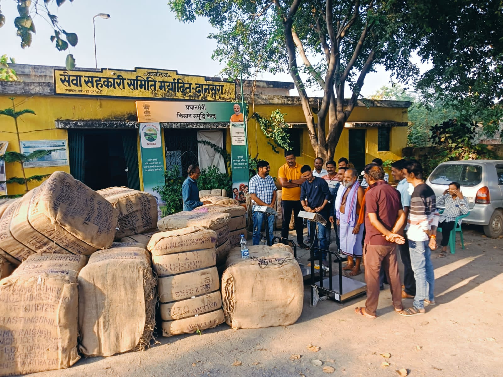 सारंगढ़ बिलाईगढ़, 15 नवंबर 2025,/ विपणन वर्ष 2025-26 में सारंगढ़ विकासखंड के सेवा सहकारी समिति कनकबीरा, कपरतुंगा, नौरंगपुर, कोसीर छोटे, दानसरा, मल्दा ब, अमझर के धान खरीदी केन्द्र में प्राधिकृत अधिकारीयों द्वारा किसानों एवं स्थानीय जनप्रतिनिधियों की उपस्थिति में इलेक्ट्रानिक तौल मशीन का पूजन अर्चना कर धान खरीदी का शुभारंभ किया गया। इस दौरान पूर्व विधायक शमशेर सिंह और गणमान्य नागरिक रामकुमार थूरिया उपस्थित थे। इसी प्रकार खाद्य अधिकारी गणेश कुर्रे की उपस्थिति में बिलाईगढ़ ब्लॉक के उपार्जन केंद्र धनसीर में धान खरीदी प्रारम्भ किया गया। अधिकारियों ने इस दौरान किसानों का सम्मान किया गया।
