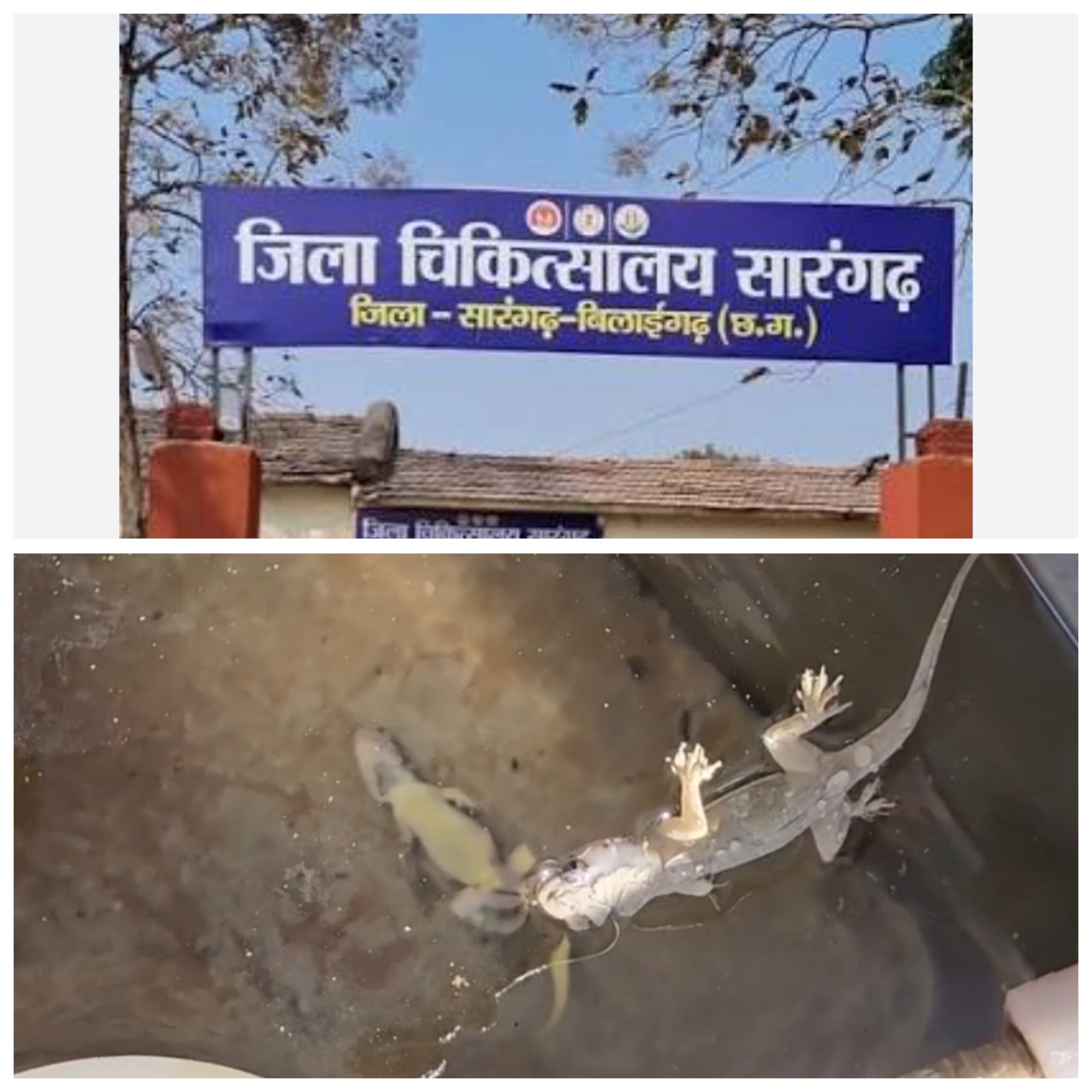 सारंगढ़ बिलाईगढ़ // सारंगढ़ जिला तो बन गया लेकिन सफाई व्यवस्था ठप आज दिनांक 23/03/2026 को जिला अस्पताल में पीने के पानी फ्रिज (वाटर कूलर )में दो मरी हुई छिपकीली पीने पानी में तैरते दिखाई पढ़ने पर लोगो में आक्रोश देखने को मिल रही है, कहा जा रहा है की सारंगढ़ अस्पताल मरीज हो या स्वस्थ हो हर कोई हॉस्पिटल आते जाते रहते है ऐसे में लोगो के स्वास्थ्य कैसा प्रभाव पड़ता होगा!सारंगढ़ में पानी साफ नहीं है तो सोचा सकते हो सारंगढ़ में न जाने कितने वाटर कूलर लगा है बड़े बड़े पानी टंकी हर मोहल्ले में पानी टंकी लगी हुई है ऐसे में लोगो के स्वास्थ्य साथ खिलवाड़ आखिर कब तक ऐसा चलेगा ये तो सोचने वाली बात है अब देखना यह होगा कितने दिनों बाद सारंगढ़ के सभी पानी टंकी की सफाई करवाई जाती है!!